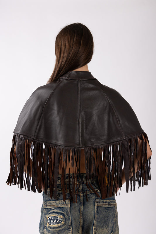 Crafted from 100% genuine Argentine leather, the Córdoba Fringe Cape is a bold reinterpretation of heritage outerwear. Inspired by the spirit of Argentina’s countryside, it merges traditional craftsmanship with a modern, cropped silhouette.