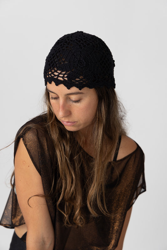 Regular price $60.00Regular priceUnit price / perSale price $60.00A bold reinterpretation of a classic. Crafted in black crochet, this piece brings a sleek edge to the bohemian spirit. Lightweight and breathable, it’s a bold yet timeless accessory that pairs easily with any look.