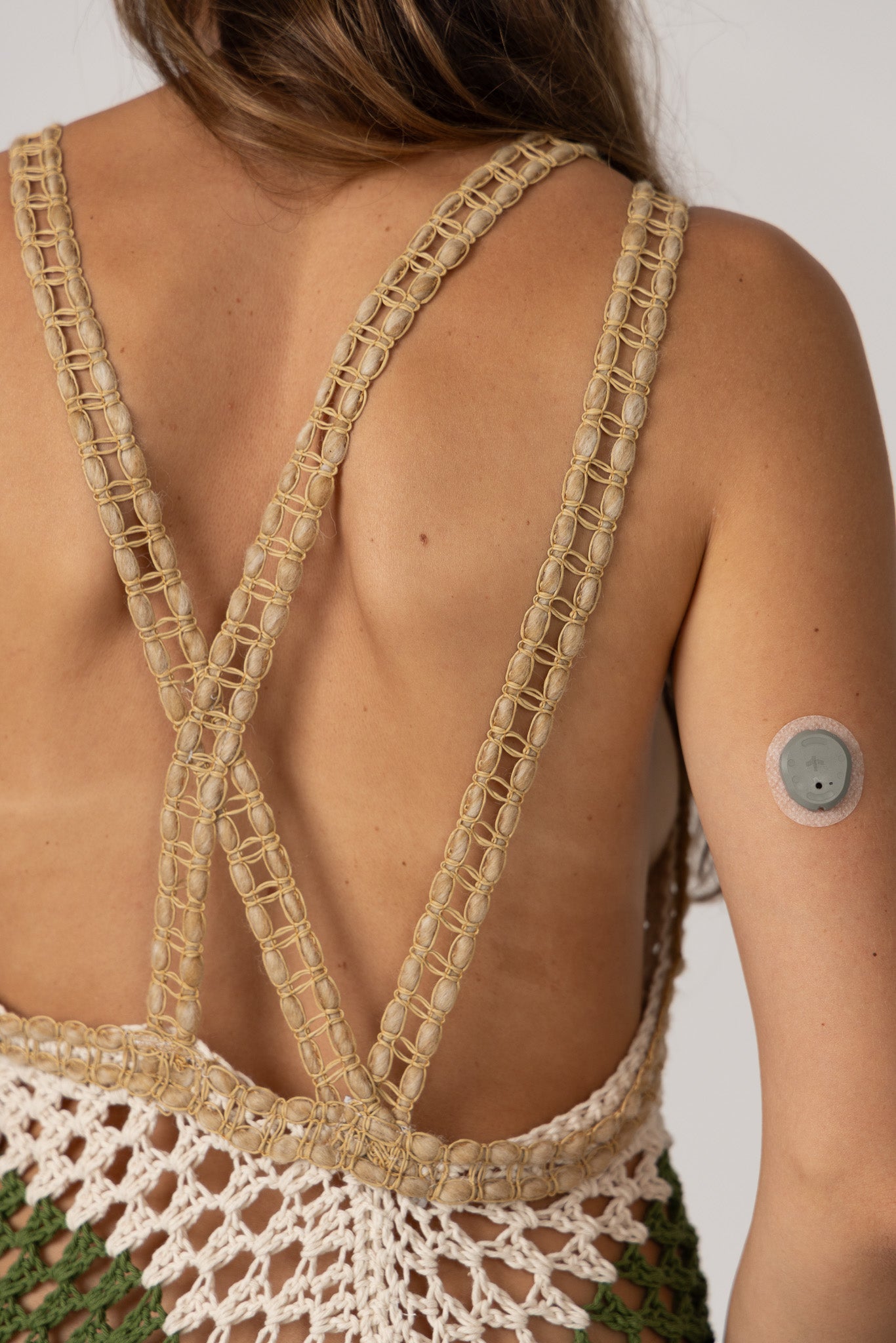 Crafted in natural cotton crochet with a bold green diamond pattern, the Ivy Dress is a true one-of-a-kind. Its asymmetric design flows from a high-low cut, while the open back crosses with vintage crochet strings for a striking finish. A statement piece that embodies both artistry and freedom.
